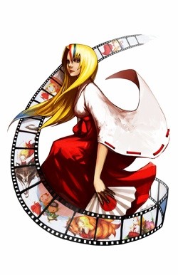 Hanjun: The requirements for the poster were pretty specific! It needed to be 11x17'', 300dpi, no image cutoffs around edges, no background, simple and eye-catching. I decided to go for something more graphic and a cleaner style than my usual to fit the requirements. Since this poster was for the video rooms, I also wanted to include something to do with film. Their mascot was a shinto priestess, so the design definitely needed to have her in it. With such detailed instructions, it was just a matter of incorporating all the elements into the picture. I sketched several poses and chose a full body one to eliminate awkward cutoffs. I then added the film strip with overlays of other art I did for the convention to indicate that it was the video room poster.