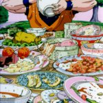 5. Goku (Dragon Ball Z) In Goku's case, you can't throw out an adequate Kamehameha blast without consuming enough energy first. Goku will easily clear a whole table of food and his son's appetite isn't anything to scoff at, either. Goku's need to eat is so overpowering he has attributed losing fights to opponents because he was hungry. Is this really surprising coming from a series where majority of the characters are named after food?