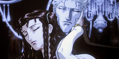 1. Vampire Hunter D Bloodlust A Romeo and Juliet love affair between a vampire noble and a beautiful, dark-haired girl is the centerpiece in Madhouse's stylish adaptation of Hideyuki Kikuchi's novel series. Doomed from the start, Baron Meier Link and his paramour Charlotte are in a race to reach The City of the Night before they are captured by bounty hunters dispatched by her father and brother. The film caps off with Meier Link taking to the skies with the dying Charlotte, their "City of the Night" perhaps more metaphor than physical place. The film does an excellent job capturing Yoshitaka Amano's art sensibilities and filling each scene with a brooding atmosphere amidst the lush, Gothic architecture.