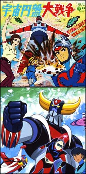 Nagai's super robot lab would eventually use this big-screen format to unleash something of a pilot film on his adoring public; along with the end of Great Mazinger, 1975 saw the film debut of The Great War of the Flying Saucers, in which the dashing alien Duke Freed uses the UFO-powered super robot Gattaiger to do battle with invaders. Sound familiar? It better, because this film was the prototype for the brand new chapter of the Mazinger-verse, UFO Robot Grendizer. Just look at the similarities between the movie and the eventual TV series. They even had the same theme song!