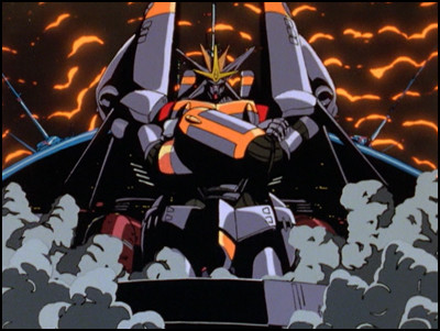 The balance of Gunbuster is full of goofy references, and endlessly clever. We notice that the ships have a payload of photon torpedoes, and the penultimate episode shares the title of Robert Heinlein's popular novel Time Enough For Love. When the iconic pounding drums start and the Gunbuster, arms fearsomely crossed, is finally revealed (remember, Koichi Ohata of M.D. Geist fame designed the thing; maybe Geist was never really bad, it was simply too dangerous), we learn that, like Getter Robo, it's a gattai (combining) robot. My favorite gag? Episode 3 opens with a recap of previous events that, rather than break down the story, clinically explains the scientific principles behind the events. Remember, the space battle that kicks off Gunbuster actually takes place in 2015. That's just around the corner!
