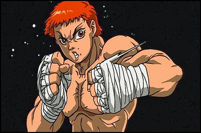 Baki, on the other hand, grabs hold of the dream of pro wrestlers mixing it up with karatekas, sumo fighters, savate champs, and judo masters and runs with it. The protagonist and his opponents utilize techniques that cause organs to rupture, bones to shatter, and blood to fly. Best of all, they usually just shake it off and keep fighting, because that's how inhumanly dangerous these fighters are, man! The OVA couldn't possibly be enough, so in 2001, the world got an all-new Baki TV series. This 48-episode series, created at Group TAC of all studios, gives us somewhat more contemporary, less outrageous versions of the characters; here, Baki has a modern hairstyle, and his dad Yujiro looks somewhat less demonic. It's this series that works harder to sell us on the story's central dynamic—Baki isn't just training to become the greatest fighter, he's trying to surpass his dad, who is the deadliest man on the planet. In this world, winning a conventional sporting tournament isn't enough—Baki will have to fight no-holds-barred matches against some of the world's deadliest killers.