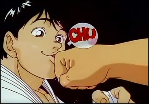 Funimation picked up this TV series, dubbed Baki The Grappler. It was a very good choice; the show is a really fun, brisk tournament fighter. It's not quite as patently outrageous as the manga, but there is an amazing episode where a fighter, arriving late to the final tourney, secures qualification by defeating an anaconda in combat. These are the rules, folks—if you can't get there soon enough to fight through qualification, you can still secure a third-round bye if you defeat an ornery one-thousand pound serpent in single combat. If there's anything more interesting than that, it's the story of how this Baki TV series got made. It was actually funded by a record label, Free-Will, who naturally used the show's opening and ending segments to place songs by their starlet Ryōko Aoyagi. This arrangement isn't altogether uncommon, but Free-Will founder Dynamite Tommy is distinctly Yoshinobu Nishizaki-esque, a showman who masterminded the rise of visual kei music both inside and outside Japan, and who has famously said that he was never really into creating music, he just liked being in a band. Naturally, these days, Dynamite Tommy manages an idol group called 2o Love to Sweet Bullet; that old Baki series of his has gotten tough to find. It was one of those shows that straddled the cel-to-digital transition, so it probably wouldn't look very good on today's TVs.