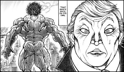 Don't tell me you want anime to be non-political... because all art is inherently political! Especially if that art is Baki The Grappler. I'm hopeful we will see this moment on the small screen, because as trashy and vulgar and violent and outrageous as it is, Baki is having a cultural moment. This new series is splashed across the world now, and despite an old failure by Raijin Comics to get the original Baki manga to the public, inexpensive e-books of the sequel series, which correspond to the new anime, are available on Amazon and Comixology. In reading these fine comics, you can see the anime Baki traced to the source; each animated iteration has stayed true to the original's carefully cultivated pugilistic insanity.