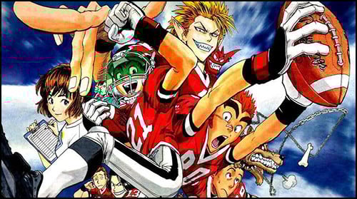 Beyond the balance of action and technicality, Eyeshield 21 is a fun shonen team sports anime—if you've been digging Haikyu!!, you can go back and like this series for many of the same reasons, as its bashful and tentative hero Sena uses the sport as a platform to build friendships and rivalries. Inagaki also really does his homework on the ins and outs of football—at his panel I went to, he talked extensively about how he'd build formation charts and play diagrams, both to help himself keep the action straight and to help out his artist Murata. Interestingly, Inagaki said that he wasn't actually a big fan of football—while he came to the US to watch games and do research on the sport, he chose gridiron football because he felt it was especially well-suited to his whole Sports Kamen Rider concept. Naturally, a lengthy Eyeshield 21 TV anime soon followed the manga.