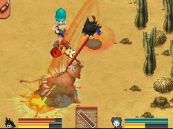 When not recalling the prurience of Dragon Ball's plot, Origins sends Goku through overhead stages full of dinosaurs, pigs, armored wolf bandits, and other recognizable enemies. Everything's carried out through the touch screen, which lets the player drag the stylus around to guide Goku or unleash attacks with his fists or extending pole. It's similar to the exceptional The Legend of Zelda: The Phantom Hourglass, though Goku's repertoire of items is far more limited. The puzzles presented are also far less complicated, though it's sometimes hard to work out exactly what the game wants you to do. It's ultimately easier to use the directional pad for movement and the stylus for attacks, particularly during boss battles.