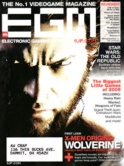 Well, it didn't take long for 2009 to get interesting in the worst way, even when it came to video games. During 2008, many whispered about Hearst's UGO network buying 1up.com from Ziff-Davis, and today it came to pass. At first, it seemed as though 1up would stay completely intact while Ziff simply shut down Electronic Gaming Monthly, a fixture among gaming magazines since 1989. I've read EGM since the early 1990s, so I remember the 400-page holiday issues from 1994, full of ads, supplements, and awkward writing. I remember the leaner but much-improved issues of the late '90s. I remember watching Next Generation, GameFan, Gamers' Republic and Game Players all go under, leaving me glad that EGM was still around and still a solid magazine. So I'm not too happy about this.
