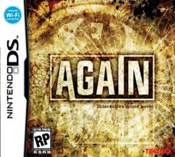 AGAIN Publisher: Tecmo Platform: Nintendo DS Players: 1 MSRP: $29.99 Hotel Dusk: Room 215 was an interesting creation: a graphic adventure game that wasn't kid-friendly, utterly filthy, or littered with horror-movie freakouts. Yet it apparently wasn't a huge success in North America; at least that's what I assume from the fact that Nintendo, which published Hotel Dusk, passed on developer Cing's thematically similar Again. Like Hotel Dusk, Again is a relatively realistic investigation guided by conversations and clue-hunting. The DS is held like a book, and the stylus is used to poke around various crime scenes, all in search of the truth behind a series of murders apparently connected to similar killings 19 years before. Oh, and you're controlling the FBI agent who was the only survivor of said murder spree. The DS is home to plenty of detective-adventure games already, but Cing (which also made Little King's Story) has a knack for giving conventional games strange twists.