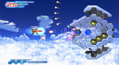 If it's not a particularly good shooter, there's at least plenty of Otomedius Excellent to go around. The game's seven pilots (plus four others to be unlocked or bought as DLC) are diverse in their armaments, with dozens of different weapons to test. The lasers, ripple beams, bombs, missiles, rocket punches, and “valcan” machine guns are available in many different forms, even if a few seem downright useless. There's also a three-player mode, a welcome break from the two-ship confines of many old-school shooters.