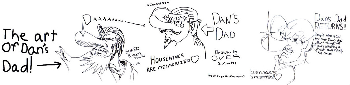 But which version of Go would we see? Dan Hibiki started off as a mockery of Ryo and Robert from SNK's Art of Fighting series, and his father was similarly styled after Mr. Karate, the masked persona of Ryo's dad. This is evident in the above artwork from Versus Books' Street Fighter Alpha 2 strategy guide—which, by the way, is a great collectible for Street Fighter nerds. It has a bunch of amusing artwork that I haven't seen anywhere else.