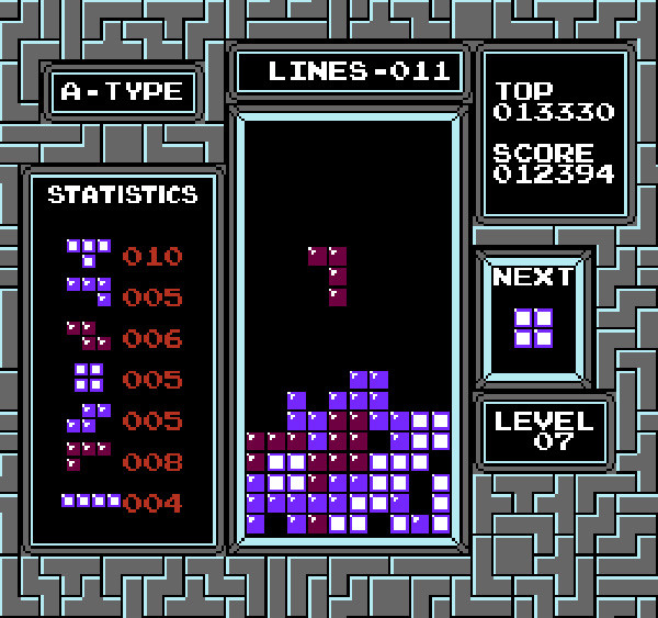 Tetris sees the player constructing a sample of a social structure, and it is easy to see the symbolism of "fitting in" inherent in the design, but once we are made aware of each block shape's representation of a distinct sexual orientation, their relation and effects become even more distinct. The "straight" piece (the most obviously-named allegory of the group) most easily "fits in" with the crowd, and is seen as the most desirable. Meanwhile, the "L-block" pieces are representative of bisexuality, able to pass for "straight" to those that would disdain any other identity, but "sticking out" just enough to disrupt social structure. The "zig-zag" and "T-block" pieces represent male and female homosexuality, respectively, seeming to fit in with only their own to those limited in their belief of these social roles. Finally, asexuality is shown by the "square" piece, with its difficulty to mingle with the hypersexual identities of the other blocks. Amongst all this disparate structure, however, we find the true life lesson of Tetris: A line of full connection is cleared, symbolizing our ability to erase conflict through understanding, and emphasizing the point that our differences disappear in the face of a true desire to connect with each other.