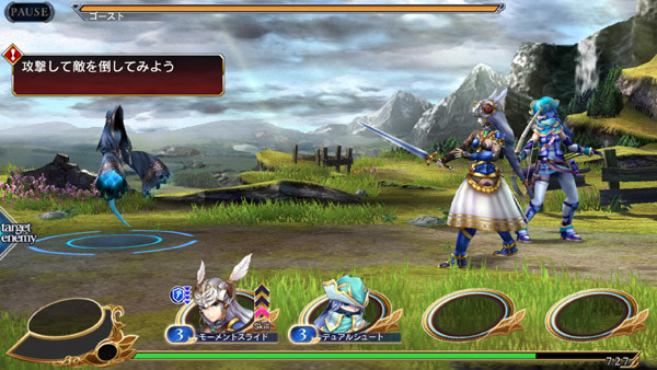 Going by the tutorial and the first quest, Valkyrie Anatomia puts Lenneth on a path of floating isles where she bridges gaps and stuns enemies by expending points (which I'm sure the player can buy). Once in battle, the old Valkyrie Profile system emerges as players tap the screen to make party members attack. With correct timing, they'll juggle enemies and pull off spectacular attacks—including Lenneth's Nibelung Valesti.