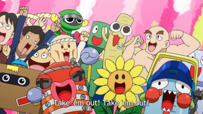 And I friggin' love it, even though it makes me want to gouge my eyes out. I bet you haven't seen another anime in which the zombie apocalypse is halted by jamming screws into their crotches.
