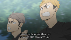 Yeah! Not everyone on the team can be a genius like Kageyama, or as Kenma would describe Hinata an "incomprehensible" freak, but team dedication is the foundation of their victories. So anytime we see the occasional successful play by like Tanaka or Suga over some of the usual suspects, it shows that even if the individual players aren't as strong as some of Inarizaki's members, as a team they're working hard to cover for their inconsistencies.