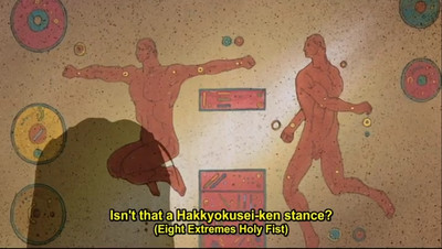 Being a motion picture with such an artistically-driven man like Obari at the helm means that even when this movie doesn't look it's best it's still eye-catching and memorably stylized. Compared to stuff like the freaking Street Fighter cartoon, or the Darkstalkers cartoon, or—shudder—the Mortal Kombat cartoon.