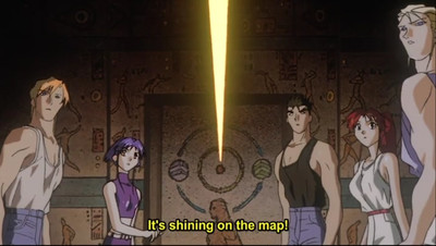 The team splits up: Joe, Mai and Andy go to Baghdad, and Sulia and Terry go to Turkey!. We get some more anime-only character stuff, introducing the character Lily as a belated long-lost love for Terry. Again, no basis in the games—Terry's reason for fighting Geese Howard was because Geese killed Terry's father—but the film establishes that Geese had Lily murdered.