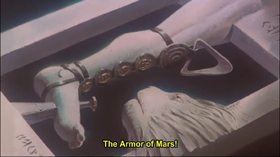 Sulia explains to the cast that she is Laocorn's twin sister, and she's currently trying to stop Laocorn from gathering the Armor of Mars. It turns out, it belonged to their ancestor, the warrior Gaudeamus, a man so powerful he gave Alexander the Great pause. His rage lives on in his armor after a group of warriors slew him.