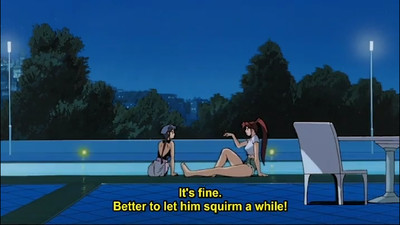 No joke. I'm getting ahead of myself, but Obari gave Mai a whole dance sequence entirely to herself later in the film, to say nothing of his typical cheeky freeze-frame bonuses. Let's just say Mai doesn't wear anything you don't already see.