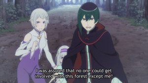 This is the point where I highly recommend people watch the roughly one-hour-long prequel OAV "The Frozen Bond" for more context. It's not answers but it does give a little more clues on how Puck might play a role in Emilia's life and what her life was like before the series. Plus, it has A TERMINATOR HORSE.