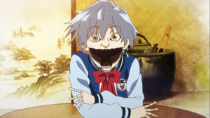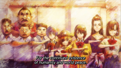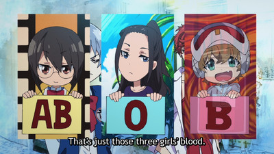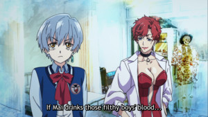 I'm not even sure the other characters add much. Chimatsuri's raw id basically makes her a must for Bamba's masochistic personality, to say nothing of her actually pushing events forward. But then you have Bamba's Blood Drive Club members: Nami Uten, from the Dance club; Maki Watabe, from the Cinema club; and Kaoru Konno from the Cosplay club. And they're just kinda there to cosplay old stuff?