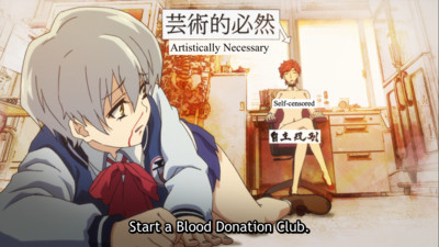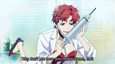which she does anyway). So Bamba goes to her sexed-up school nurse, Chihiro Chimatsuri, to make a blood donating club. As you do.