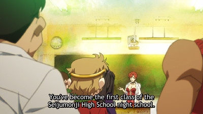 In true screwball comedy fashion, the parental conflict goes nowhere and we just get the cast going to night school in order to accommodate Mai's nocturnal lifestyle, also Castlevania references via 'Castle of Vania'.