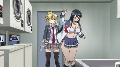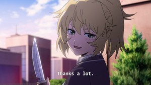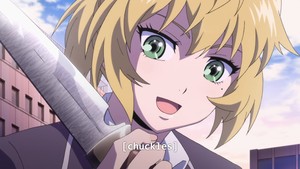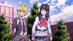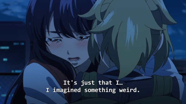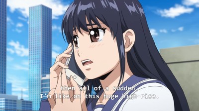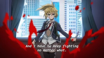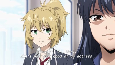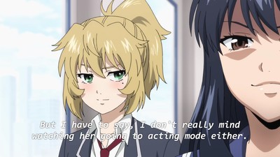 That's not gonna stop some folks from insisting this show totally passes the Bechdel Test or whatever. But yeah, after the forced stripping in the first episode Yuri simply doesn't let herself be victimized, which feels okay. High-Rise Invasion had a ton of opportunities to be way grossed, which it didn't take. It just really preoccupied itself with panty shots and various states of undress.