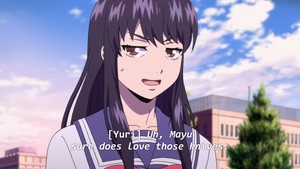 Yeah, Mayuko. So, when she's introduced, she's just another "kill or be killed"-type. But I guess meeting Yuri made her turn over a new leaf, so they became "friends".