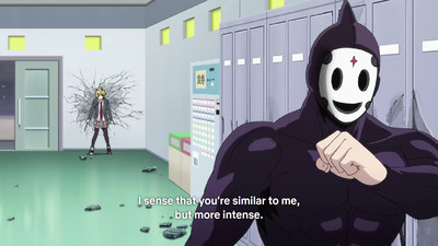 High-Rise! Every villain mask ends up with their own gimmick based on their prior lives, and the show runs with that to delightfully absurd degrees. Were you a baseball player? Now you get to pitch cannonballs straight through dudes' craniums!
