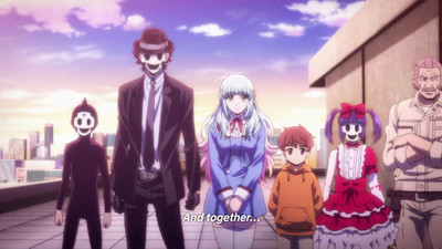 Basically it's a good old-fashioned death game setup. People are mysteriously teleported to a city full of—you guessed it—high rises connected by rope bridges with no way down except the extremely permanent way. There are creepy killers in masks trying to drive non-masked people to suicide, and the protagonists are fighting for their lives within this bloody skyscape, and so on and so forth. We know the drill.