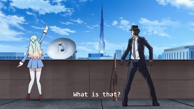 Things get a little more complicated when Kuon appears; her deal isn't quite expanded upon, but she has access to a railgun somewhere in the city. She just does, okay? She's not bright, but she's trying to help. And she has a railgun.