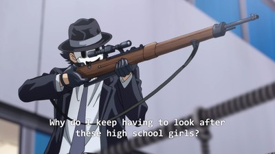 At first, I thought Sniper Mask would turn out to be Rika, but the truth is a bit more muddled: he's a friend of Rika's, and a close one. We don't know the full extent of their relationship, just that they were very good buddies. Sniper Mask's, er, mask would make him a murderous lunatic, but it's damaged so he has a degree of control over his actions. He's fun to see, and I guess I'm a sucker for bolt-action rifles...
