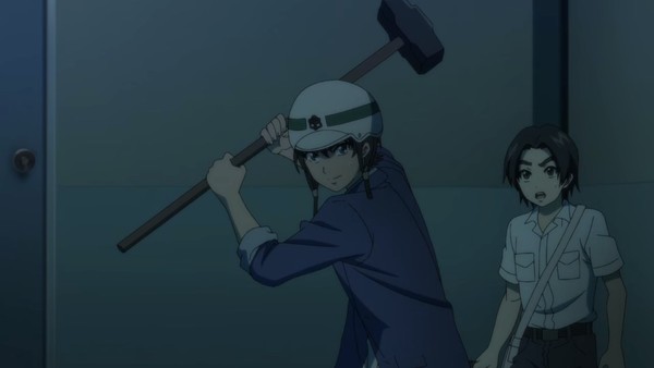 For the record: Hammer Baseball Batman is Rika, Yuri's older brother. The crux of this show is Yuri and her girlfriend trying to get back together with Rika and his band of survivors in order to try and plan an offensive against the rulers of the city. But there's one more wrinkle in this tapestry: the elusive Sniper Mask!