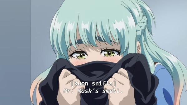 Once Kuon shows up, we start learning that this whole thing is a game to create God, somehow. The masks reprogram people's brains to unlock special powers, and certain masks can make people "closer to God," which means they can command Angel Masks and presumably fight amongst themselves for eventual divine supremacy. It's very stupid, and I dig it.