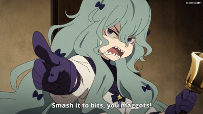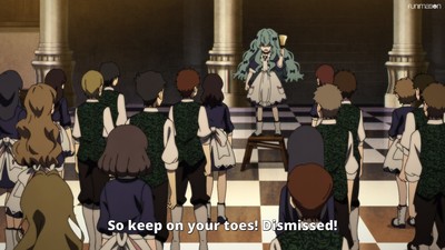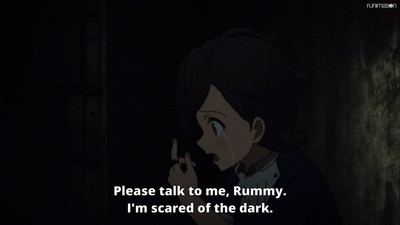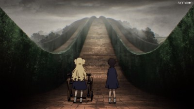 And we find out that Rum's anxiety stems from this perceived distance between her and her mistress, but in turn this labyrinth exercise becomes an opportunity for her to grow closer to her other peers, especially Emilico.