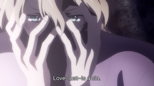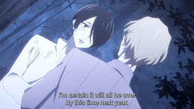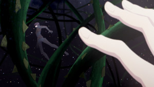Lmao, it's also one of the better aspects of the art direction. Aya Kanno's manga is beautiful in a way that can't be present on screen. Kentarō Suzuki's previous credits include the Angels of Death anime adaptation, which I enjoyed as a fun trash indulgence, But J.C. Staff isn't always known for their consistency and that really means living up to Kanno's artistic talents are hit or miss. There's some wonderful stills, backgrounds, and other choices in this show, but most of the battles are lackluster. There are some scenes that are literal slideshows with not much to show for them, and then there are others that aren't animated but definitely capture the abstract tone. It's not that it lacks ambition but the overall production leaves something to be desired.