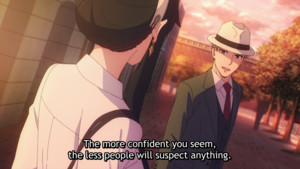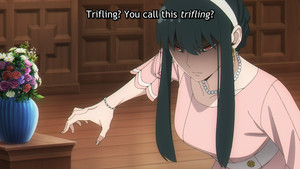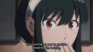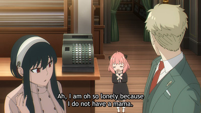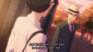 Yuri's presence does cast a seed of doubt into Twilight's trust in Yor, but a quick bit of chicanery quickly puts that to rest. Yor's no more aware of Yuri's involvement with the Secret Police as anyone else. As it stands, the only major threat to the plan is Anya's difficulties in earning a Stella.