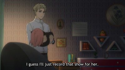 Also, yes, the show definitely revels in its Cold War-era aesthetics. I don't know how period accurate Twilight in a white t-shirt and jeans or Yor's weird not-quite backless sweater are, but it still feels classy and stylish as befits a spy and an undercover assassin. Also, their big, chunky TV is just charming. Look at those dials! Twilight must be loaded to afford a color TV for Anya's cartoons.