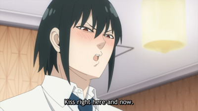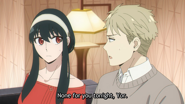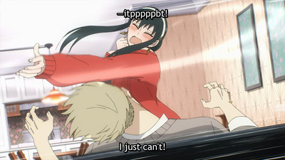As cute as Yor and Twilight might be together, they've never even kissed so having to kiss on command is a bit much for Yor's frazzled nerves to handle.