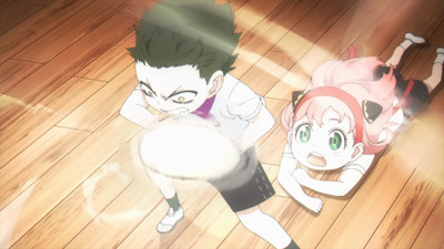 Right, so dodgeball: Anya's classmates hear rumors that doing well in the dodgeball game can earn the MVP a Stella. So Anya recruits Yor's help in getting some physical training to turn her pudgy toddler arms (five-maybe-six-year-olds are toddlers, right?) into mean dodgeball machines. Damien also goes through his own training regimen, including a cheeky reference to that other famous