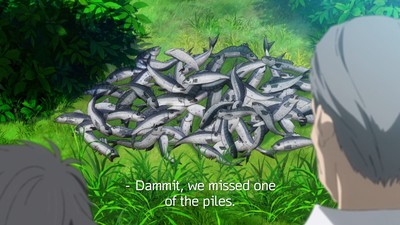 That fake out angle does highlight the character of Kan, who's made out to be a marauding antagonist in the show's flash-forward opening, only to come across as nothing but a kind-hearted gentle giant as we and the residents get to know him over the course of the series.