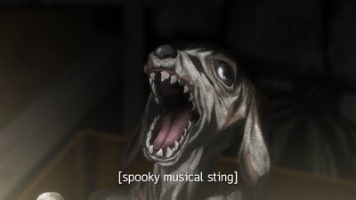 This would be a frustrating enough problem for any series, but it results in a particular death sentence for what Housing Complex C is trying to be: it isn't scary. For all the reasons you just listed, it fails to set up and pay off the tension and atmosphere necessary for a Halloween-appropriate airing. Even its jump scares don't land, regardless of how many dead dogs it utilizes for them!