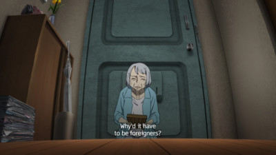 I think I would like it better if he had a slightly nicer looking design and didn't feel so much like a caricature to me. Most of the other characters are also relatively simple, so by comparison he actually come off as one of the more complex ones. We still don't get as much about Kan or most of the other migrants as much more than just the background characters and the anxieties of the main elder residents. Even Kimi is portrayed as no more than a seemingly cheerful albeit eccentric little girl, most of the time.