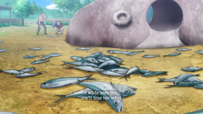 Something happens and everyone goes "that's weird' and go back to their day. Meanwhile, the show also sometimes puts in false scares about the perfectly mundane and average things to highlight the differences between people, like say the local custom of eating shrimp live or several of the new residents partaking of daily prayer in the Muslim fashion, or even just your local otaku. Ooooh Spoooooky!~