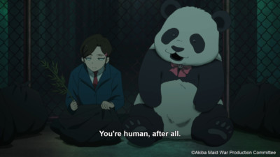 Nah, I'm sure the cop-themed maid café is totally normal, unlike the literal crime family that Nagomi ends up skipping her lou into. Like, I'm sure there's nothing up with this totally normal panda.