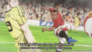 Well, kind to a point. He gives all the support and friendliness you'd expect from a shonen protagonist riiiiiiight until the game's on the line. Then he stops caring about Chigiri and knocks him out of the way to get at the ball, desperate for a goal.