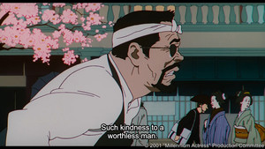 And that leads into Chiyoko's dying words and final line of dialogue, which beautifully and starkly sums up the film's take on romanticism. It seems almost callous when you first hear it, but it ends up, to me at least, as a poignant statement of purpose and enlightenment.
