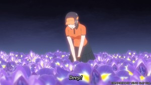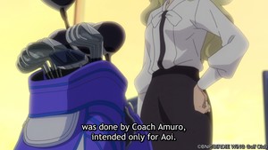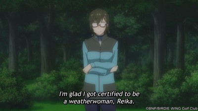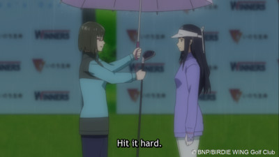 Despite ostensibly being predicated on a "normal" competitive structure like the high school tournament storyline, the Road To The Pros arc is at least keeping the wildness quotient up, even as it's taking its time reuniting our favorite golf girlfriends. Aoi's side of the storyline is technically the most basic the show's gotten in a while, and it still features a caddy bound by Golf Indentured Servitude who saves the day with weather control.