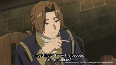 The few demons we've met so far seem to fit that bill. After a brief introduction to them in diplomat mode, all of their scenes behind the curtain are almost laughably diabolical. The townspeople and their government are framed as hapless chumps for trusting the demons, and Frieren is wholly exonerated for trying to blast them into smithereens at first blush.