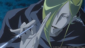 There's a perfect exhibition between the first and second episodes, where the climactic confrontation is reanimated with enough variation for even an amateur anime connoisseur to notice. Most series would lean towards a unified style, but I love the confidence Noein places in its animators.